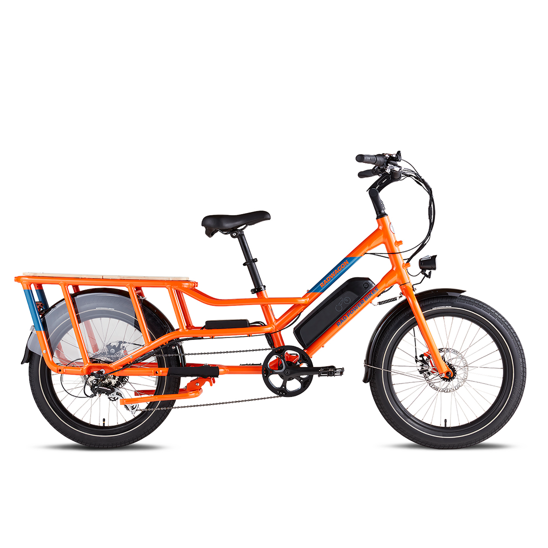 The RadWagon 4 is a leader in electric cargo bikes. With a comprehensive redesign for lower center of gravity, patent-pending frame design, 350 lb payload capacity, custom tires & geared hub motor for improved uphill hauling capabilities, the RadWagon 4 is the raddest car replacing ebike we've ever created.
